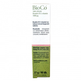 A BioCo 100% VEGAN termékcsalád magas minőséget képvisel a vegán életmódot követők számára. Minden összetevőt gondosan válogattak és ellenőriztek, hogy a fogyasztók biztonsággal választhassák a terméket. A B12-vitamin bioaktív, természetes metilkobalamin formában kerül a készítménybe, magas dózisban. Fontos, hogy vegán étrend esetén különösen figyeljenek a megfelelő B12-vitamin bevitelre, amely hozzájárulhat a fáradtság csökkentéséhez, az idegrendszer és immunrendszer normál működéséhez, a normál vörösvérsejt-képződéshez, valamint az energiatermelő anyagcsere-folyamatokhoz. A termék Magyar fejlesztésű és gyártású, azonban a hatóanyag nem Magyarországról származik.