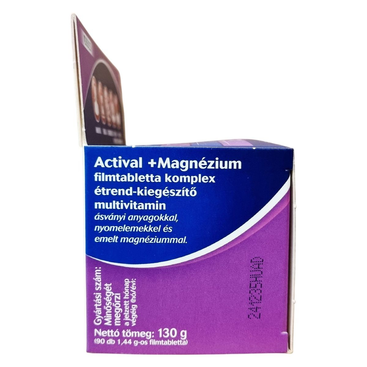 Az Actival +Magnézium filmtabletta komplex étrend-kiegészítő multivitamin készítmény ásványi anyagokkal, nyomelemekkel és emelt magnéziumtartalommal. Kettő az egyben támogatás a multivitamin és a magnézium erejével, amely segítheti a fáradtság és kifáradás csökkentését, a normál izomműködés fenntartását, a csontozat egészségét, valamint az idegrendszer normál működését. A benne található hatóanyagok hozzájárulhatnak a szervezet megfelelő vitamin-, ásványi anyag- és nyomelemellátottságához, így a jó közérzet és teljesítőképesség fenntartásához. Fogyasztása elsősorban jelentős fizikai és szellemi terhelés, kiegyensúlyozatlan táplálkozás, valamint betegségek utáni lábadozás esetén ajánlott. Az összetevők között megtalálhatók többek között a különböző vitaminok, ásványi anyagok, aminosavak, antioxidánsok és emulgeálószerek, amelyeket gondosan válogattak össze a hatékonyság és biztonság érdekében.