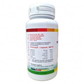 A Dr. Herz MAGNÉZIUM+B6 kapszula magnéziumot, B1-, B2-, B6-vitamint és folsavat tartalmaz, amelyek hozzájárulhatnak az idegrendszer megfelelő működéséhez és a normál izomműködéshez. A termék vegán étrendbe illeszthető.