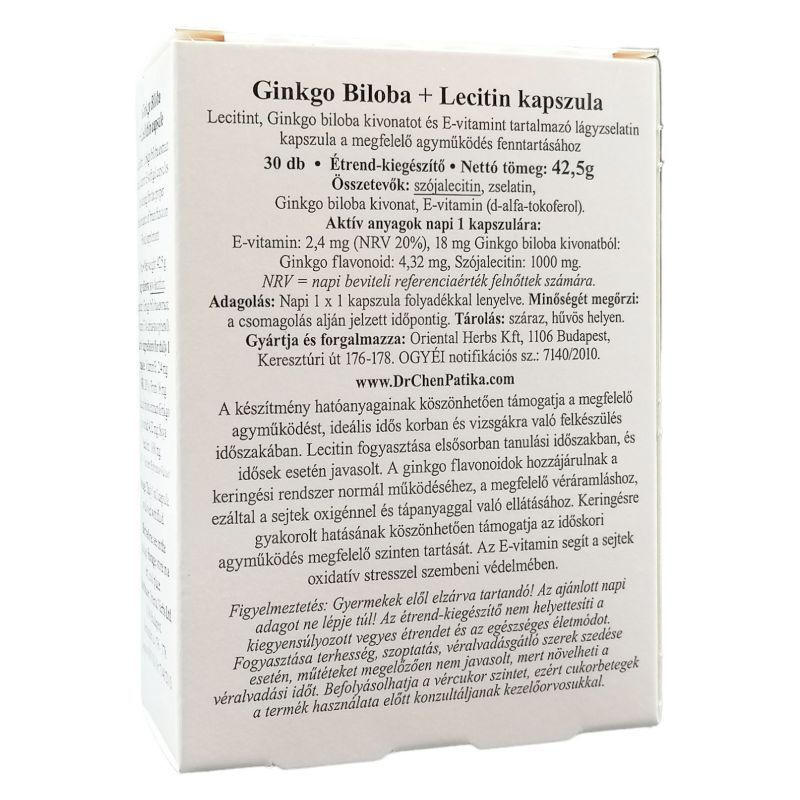 Lecitin fogyasztása elsősorban tanulási időszakban, és idősek esetén hatásos. Az oxidáció miatt gyorsított ez az elhasználódási folyamat. Az agy alkatrészei kopásnak indulnak, ebben segíthet a lecitin, hasonlóan a motorolaj funkciójához, mely védi az alkatrészeket a kopástól és jobb teljesítményt generál. A ginkgo flavonoid hatóanyagai a vérkeringés tonizálásával hozzájárulhat a lecitin hatóanyagainak szétterjesztéséhez, a keringési rendszer normál működéséhez, a megfelelő véráramláshoz, ezáltal a sejtek oxigénnel és tápanyaggal való ellátásához. Ennek köszönhetően támogatja az időskori agyműködés megfelelő szinten tartását. Az E-vitamin segíti az immunrendszer működését, hozzájárulhat a kognitív képességek korral járó hanyatlásának csökkentéséhez. Ajánlott adagolás: napi 1 × 1 kapszula bőséges folyadékkal lenyelve.
