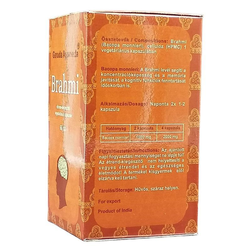 A Brahmi-bakopa gyógynövényét évszázadok óta használják az ayurvédikus gyógyászatban a mentális képességek fokozására. Rendszeres fogyasztása javítja a kognitív funkciókat, erősíti a memóriát, és elősegíti a tanulás folyamatát. Az összetevők antioxidáns hatásuk révén védik az agyat, miközben csökkentik a stressz és a szorongás szintjét.