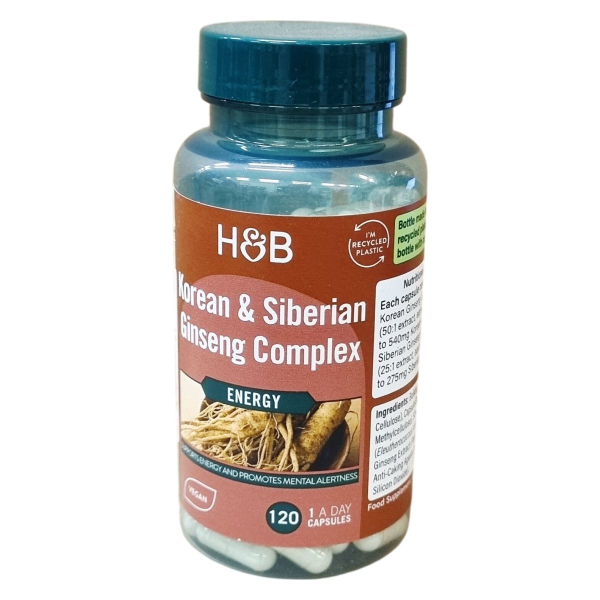 A H&B Ginseng Komplex kapszula netó tömege 40 g, amely 120 darab kapszulát tartalmaz és 120 adagra elegendő. A termék palackja legalább 80%-ban újrahasznosított műanyagból készül, és a környezettudatos tárolás érdekében a palackot a kupakkal együtt kell újrahasznosítani. A kapszulák hatóanyagai a koreai ginzeng (Panax ginseng) szárából és leveléből, valamint a szibériai ginzeng (Eleutherococcus senticosus) gyökeréből származó kivonatok, melyek koncentrált formában vannak jelen. Csomósodást gátló anyagokkal és tömegnövelőszerrel készülnek, így a termék kapszula formájában könnyen fogyasztható. Az étrend-kiegészítő a felnőtt felhasználók számára készült a testi és szellemi energia támogatására, a napi szedése pedig hozzájárulhat az energiaszint fenntartásához és a szellemi frissesség megőrzéséhez.