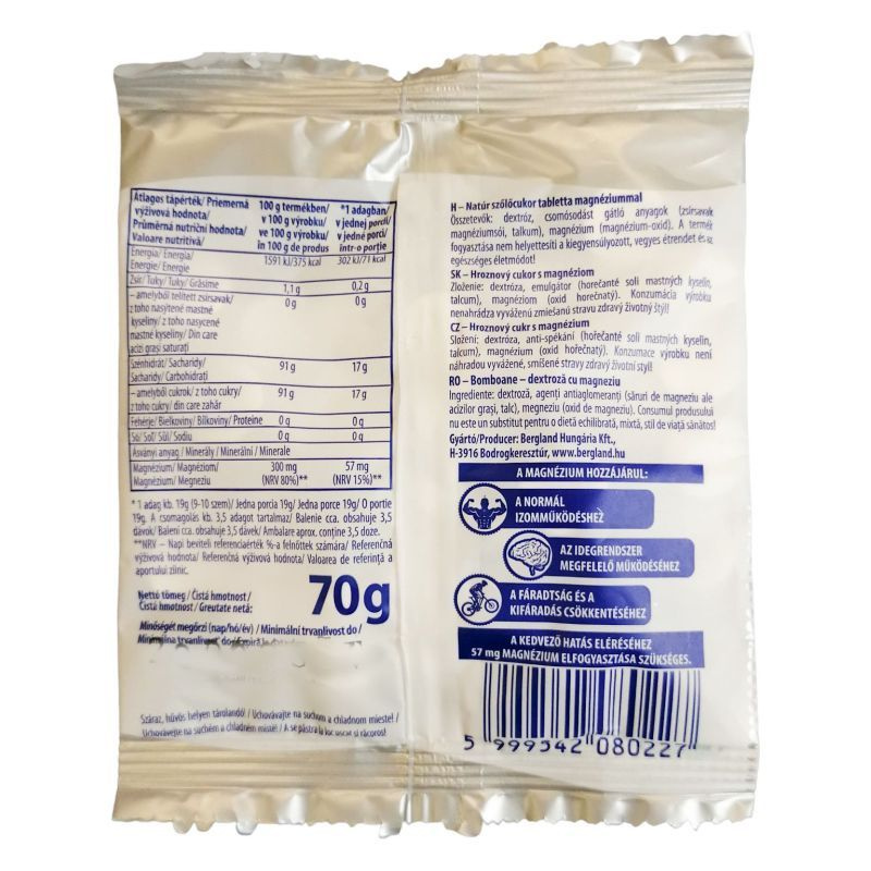 Összetevők: dextróz, csomósodást gátló anyagok (zsírsavak magnéziumsói, talkum) magnézium (magnézium-oxid)