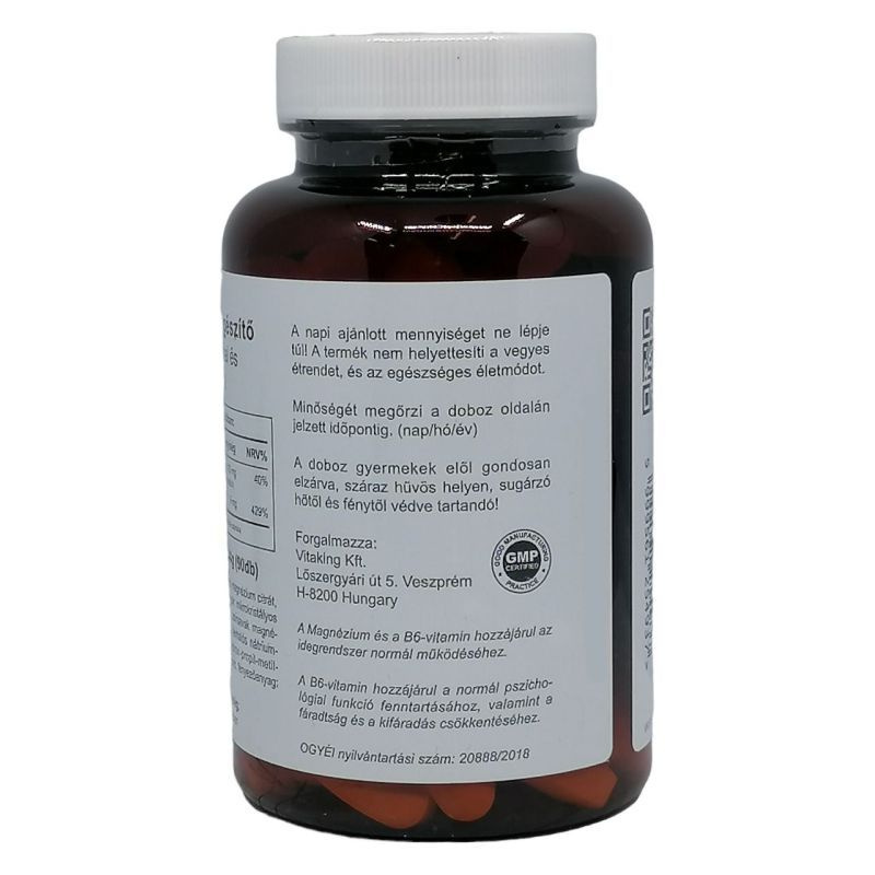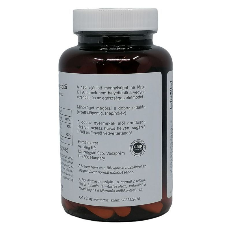 A Vitaking Magnézium + B6 tablettánként 150 mg elemi magnéziumot (1052 mg magnézium citrátból) és 6 mg B6 vitamint tartalmaz! A magnézium hozzájárul az idegrendszer megfelelő működéséhez, a normál izomműködéshez és részt vesz a normál csontozat fenntartásában.