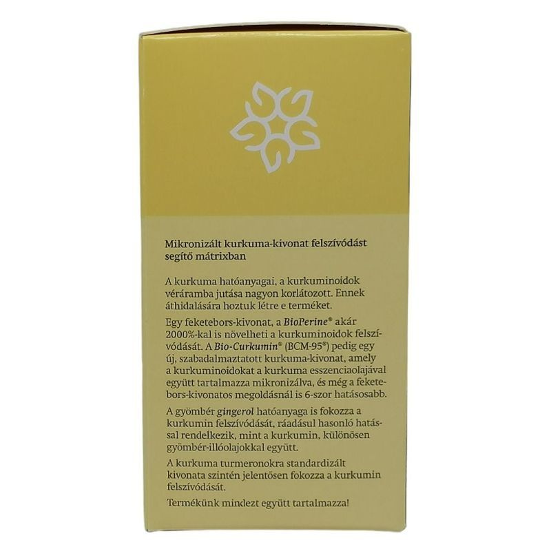 A kurkuma illóolaját és teljes spektrumú gyömbér-kivonatot is tartalmaz. A kurkumin kivonatolása 100%-ban napelem-működtetésű gyárban történik. A kurkuma hatóanyagai, a kurkuminoidok véráramba jutása nagyon korlátozott. Ennek áthidalására hoztuk létre ezen terméket. Egy feketebors-kivonat, a BioPerine akár 2000%-kal is növelheti a kurkuminoidok felszívódását.