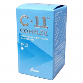 A VITAMED C-11® COMPLEX integrált porcvédő tabletta kizárólag kutyák részére készült, így segítheti az ízületi és porckárosodások kiegészítő kezelését, valamint a porcfejlődést kölyökkutyák növekedési időszakában. A termék hozzájárulhat a kutyák egészséges ízületi működésének támogatásához, az inak, szalagok, ízületi tok, kötőszövet és ízületi nedv regenerációjához, továbbá ízületi műtétek előtt és után is alkalmazható a regeneráció segítésére. Szájon át kell adni, az ajánlott adagolás 1 ízesített tabletta 20 testtömeg-kilogrammonként naponta. Az alkalmazás előtt javasolt a termékinformáció elolvasása és állatorvosi konzultáció. A készítmény nem helyettesíti az állatorvosi gyógyszereket, és az ismert túlérzékenység esetén nem szabad használni. A termék kizárólag állategészségügyi vagy állatápolási célokra szolgál, gyermekektől elzárva kell tartani.