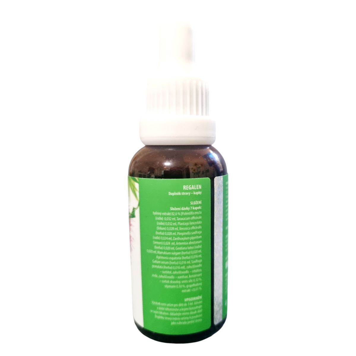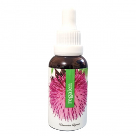 A Regalen gyógynövénykomplex a hagyományos fitoterápia elvei alapján összeállított készítmény, amely májvédő, emésztést segítő és antioxidáns hatású növényi összetevőket tartalmaz. A benne lévő máriatövis (Silybum marianum) és gyermekláncfű (Taraxacum officinale) támogatja a máj regenerációs folyamatait és az epeelválasztást. A párlófű, útifű és veronika hozzájárulhat a szervezet méregtelenítéséhez, míg az üröm és tárnics az emésztőrendszer természetes működését segíthetik elő. A Regalen csepp napi használata hozzájárulhat a szervezet vitalitásához, a sejtek oxidatív stresszel szembeni védelméhez, és támogathatja a belső egyensúly fenntartását természetes úton.