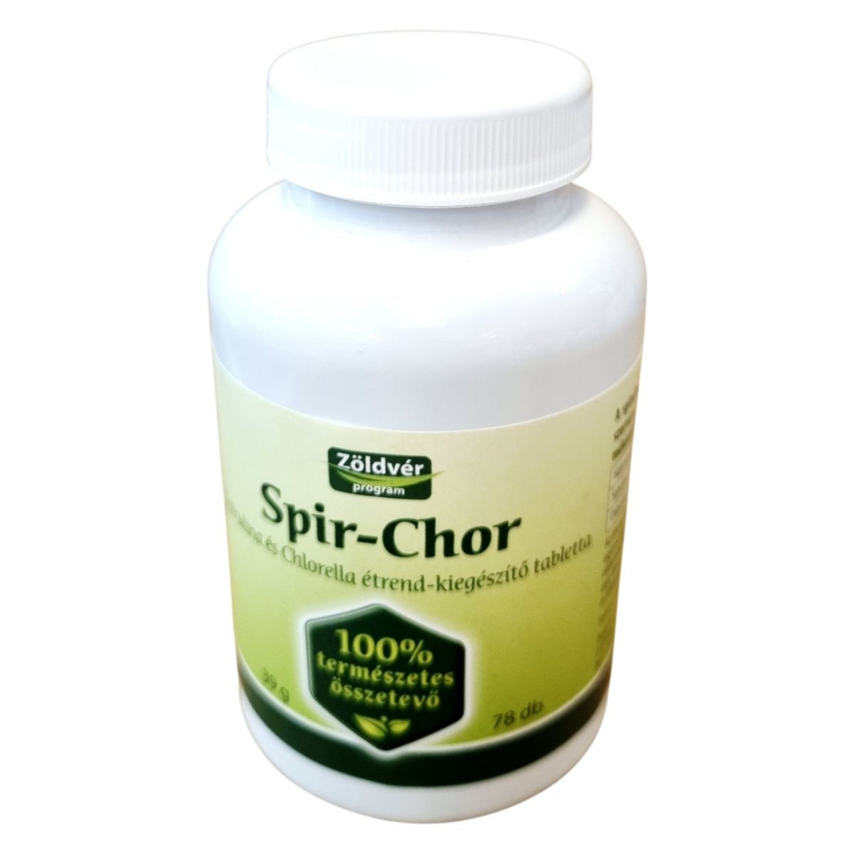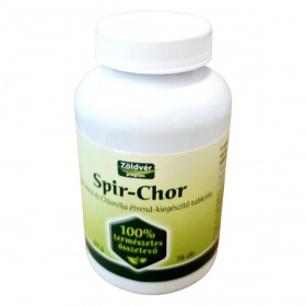 A Spir-Chor tabletta spirulina és chlorella mikroalgák természetes kombinációja, amelyek gazdagok fehérjében, klorofillban, vitaminokban és ásványi anyagokban. A spirulina és chlorella algák hozzájárulhatnak a szervezet méregtelenítő folyamataihoz, a sejtek védelméhez és a vitalitás fenntartásához. Rendszeres fogyasztása támogathatja az immunrendszert és az energiaszint megőrzését, különösen stresszes életmód vagy fokozott igénybevétel esetén. A készítmény teljes mértékben természetes összetevőkből készül, adalékanyagok, kötőanyagok és színezékek nélkül. Származási helye az Európai Unió, előállítása ellenőrzött növényi alapanyagokból történik, a Zöldvér program részeként.