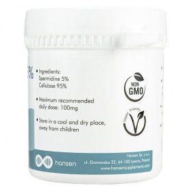 A spermidin jelenleg az egyetlen táplálékkiegészítő a Hansen kínálatában, amely 97%-nál kisebb tisztaságú. Ennek az az oka, hogy a tiszta spermidin adagolása nagyon nehéz lenne, és a tiszta spermidin rendkívül drága. Az egyetlen dolog, amit a spermidinhez tesznek, tiszta cellulóz.
