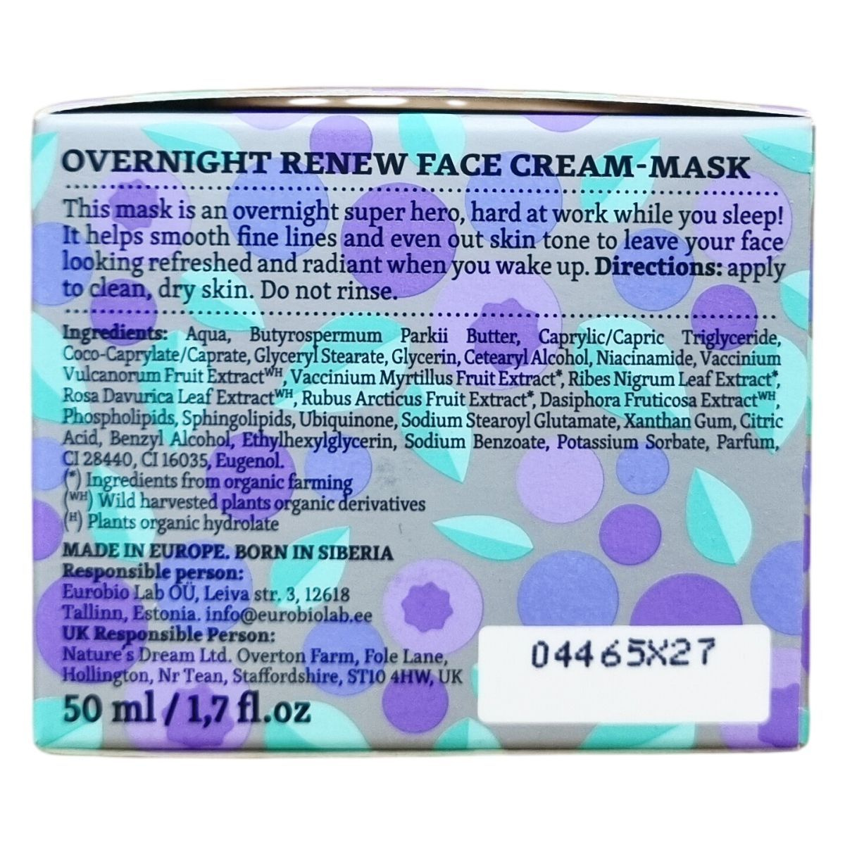 A vad vulkáni áfonya kivonat bőséges antioxidánsokat tartalmaz, amelyek felgyorsítják a bőr megújulását, javítják a tónust és a rugalmasságot, helyreállítva az egészséges arcbőrt. A ceramidok fenntartják a bőr nedvességtartalmát, erősítik természetes védőrétegét, míg a koenzim Q10 növeli a bőr feszességét és rugalmasságát. A termék vegán és kizárólag természetes alapanyagokat használ, beleértve organikus és vadon gyűjtött növényi kivonatokat. Használatával az éjszaka folyamán az arcbőr megújul, reggelre simább és ragyogóbb lesz.