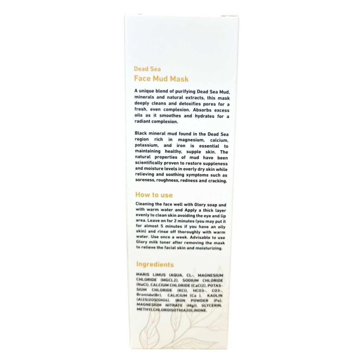 A Glory Dead Sea Face Mud Mask egy különleges arcmaszk, amely a Holt-tenger iszapjából készült, és természetes kivonatokat tartalmaz. A maszk mélyen tisztíthatja és méregtelenítheti a pórusokat, hozzájárulhat a felesleges olajok felszívásához, valamint simíthatja és hidratálhatja a bőrt. A Holt-tenger régiójában található fekete ásványi iszap gazdag magnéziumban, kalciumban, káliumban és vasban, amelyek hozzájárulhatnak az egészséges, rugalmas bőr fenntartásához. A termék tudományosan bizonyítottan visszaállíthatja a rugalmasságot és a nedvességszintet a túlságosan száraz bőrben, miközben enyhítheti és megnyugtathatja a fájdalom, durvaság, bőrpír és repedezettség tüneteit.