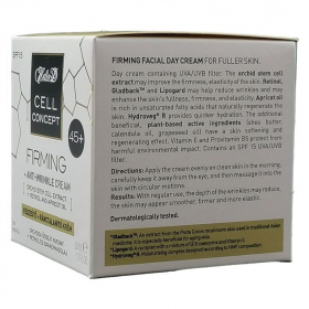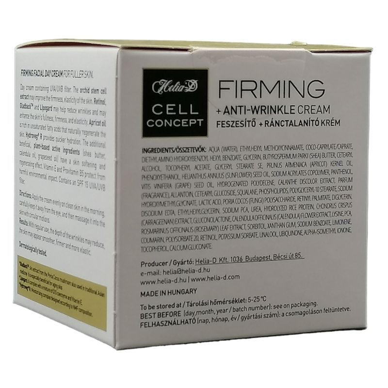 Feszesítő nappali arckrém teltebb arcbőrért, UVA/UVB védelemmel (SPF 15). Az orchidea őssejt kivonat javíthatja a bőr feszességét, rugalmasságát és ragyogását. A retinol, a Gladback™ és a Lipogard® hozzájárulhatnak a ráncok csökkentéséhez és a bőr teltségének, feszességének javításához. A barackmagolaj telítetlen zsírsavakban gazdag, természetes módon segíti a bőr regenerálódását. A Hydrovég® R gyors hidratáló hatást biztosít. A további növényi hatóanyagok (shea vaj, körömvirág olaj, szőlőmagolaj) bőrpuhító és bőrregeneráló hatásúak. Az E-vitamin és a B5 provitamin védelmet nyújtanak a káros környezeti hatásokkal szemben. Rendszeres használat mellett a ráncok mélysége csökkenhet, a bőr simábbnak, feszesebbnek és rugalmasabbnak tűnhet. Dermatológiailag tesztelt. Made in Hungary.