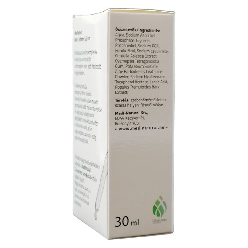 A MediNatural Aktív C-vitamin szérum a bőr varázspálcája. Olyan készítmény, amely nemes egyszerűséggel csodát tesz. Önmagukban is nagyszerű összetevői olyan kombinációt alkotnak együtt, amely a női arc számára maga a megmentő. Ez a szérum a kozmetikumok haditengerésze, aki szembeszáll az igazságért és bőszen harcol a gonosz ellen, aki nem más, mint az öregedés.