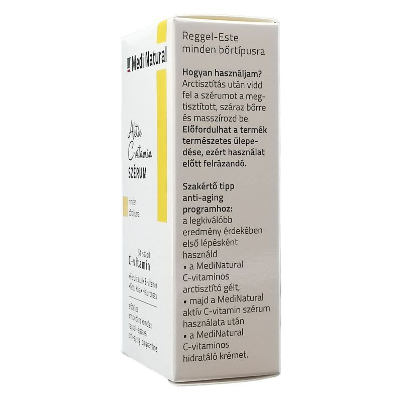 Ezek az anyagok olyan erőteljes antioxidáns hatással bírnak, amely egyedülálló a natúrkozmetikumok világában. A MediNatural Aktív C-vitamin szérum segít a megfáradt bőr regenerálódásában, felerősíti a kollagéntermelést, elhalványítja a hegeket és a pigmentfoltokat. Olyan sokoldalú készítmény, hogy még a pattanások kezelésére is kiváló. Hidratál, feltölt és lággyá varázsolja a kontúrokat. Ritka, hogy egyetlen szérum ennyi problémára megoldást nyújt. Bőröd a szérum használatától ragyogóvá, egységes szerkezetűvé, hidratálttá és egészségessé válik. Egyszerűen jó lesz ránézni, kellemes lesz tapintani és ismerőseid nem értik majd a változás okát.