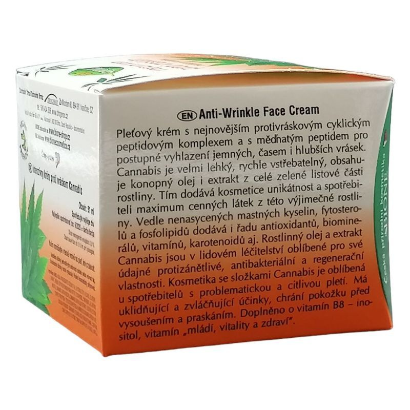 Összetétel: Aqua, Ethylhexyl Stearate, Hydrogenated Coconut Oil, Cetyl Alcohol, Glycerin, Glyceryl Stearate Se, Stearic Acid, Butyrospermum Parkii Butter, Tocopherol, Panthenol, Allantoin, Parfum, Xantham Gum, Phenoxyethanol, Capryloyl Glycine, Sodium Hydroxide, Acrylates/Vinyl Isodecanoate Crosspolymer, Sodium Carbomer, Inositol, Sorbitan Caprylate , Cannabis Sativa Seed Oil, Cannabis Sativa Leaf Extract, Alcohol, Lecithin, Ectoin, Copper Tripeptide-1, Cyclotetrapeptide-24 Aminocyclohexane Carboxylate.