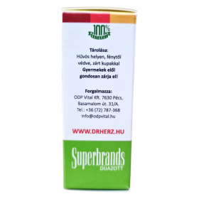 A Dr. Herz Erdeifenyő Olaj egy 100%-os természetes illóolaj, amely frissítheti a levegőt, és ideális párologtatáshoz, illatosításra. A termék hígítatlan, kiváló minőségű erdeifenyő olajat tartalmaz, amely természetes limonént is magában foglal. A termék használata során fontos a biztonsági előírások betartása, mivel lenyelve és légutakba kerülve halálos lehet, valamint allergiás bőrreakciót válthat ki. A terméket hűvös helyen, fénytől védve, zárt kupakkal kell tárolni, és gyermekek elől gondosan elzárni. A forgalmazó az ODP Vital Kft., amely Pécsen található.