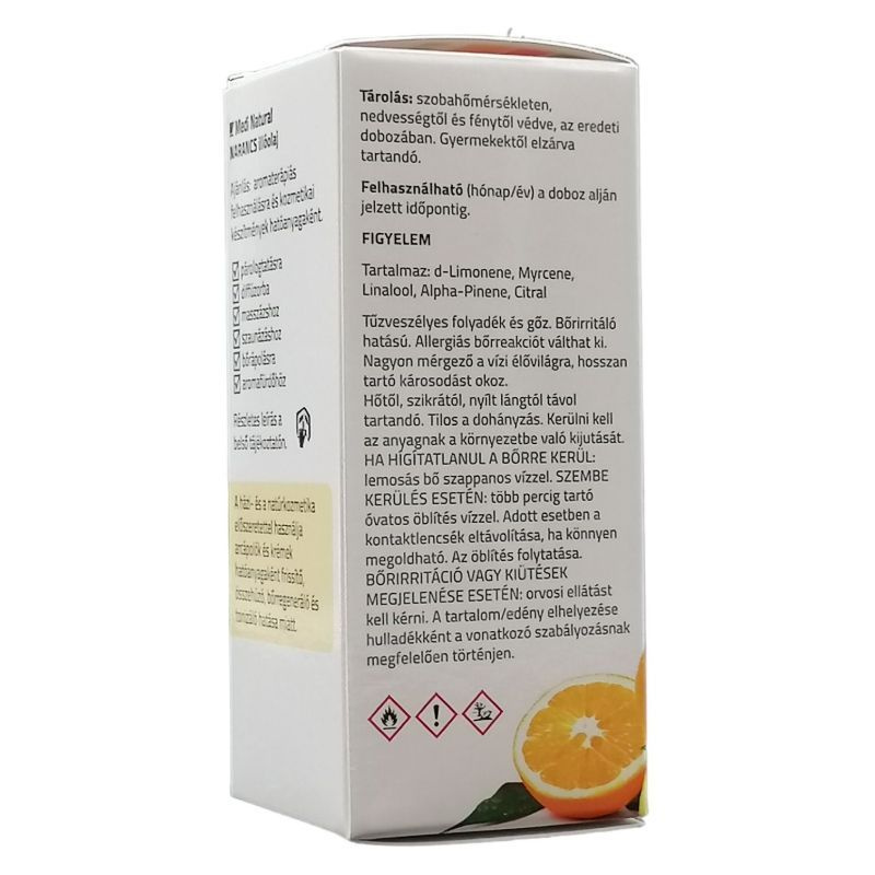 XXL Narancs illóolaj - praktikus, gazdaságos kiszerelésben, amivel pénzt takarítasz meg! Jobb kedvre vágysz, vagy csak fáradt vagy. Szívd mélyen magadba a friss édes gyümölcsös citrusos aromáját. Meglátod, hogy eloszlanak a viharfelhők a fejed fölül és mosolyra fakadsz. A házi- és a natúrkozmetika előszeretettel használja arcápolók és krémek hatóanyagaként frissítő, összehúzó, bőrregeneráló, ránctalanító és tonizáló hatása miatt. Összetevőként bármely bőrtípus ápolására szánt kozmetikai készítménybe alkalmas különösen a zsíros, vegyes, eltömődött arcbőrre.