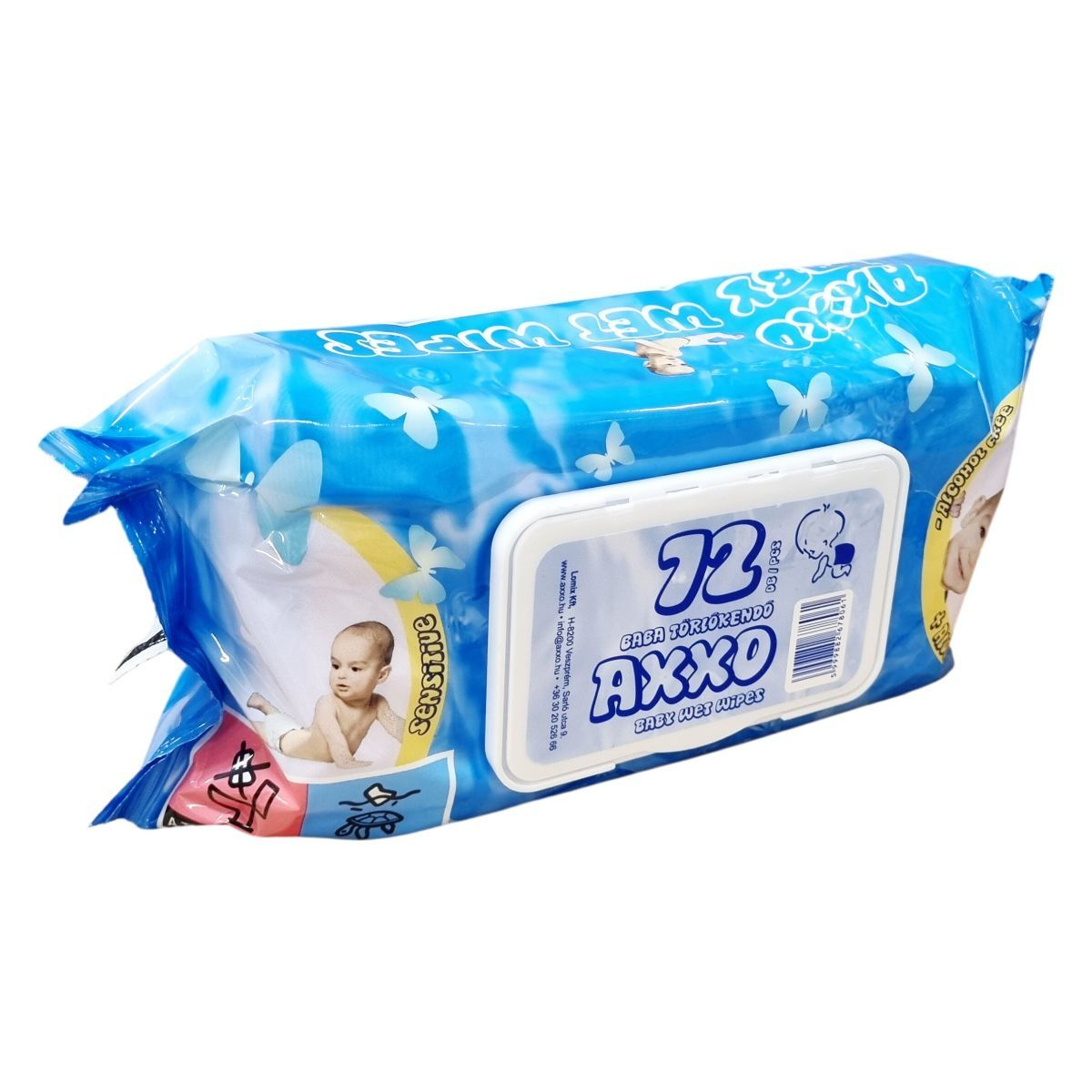 Az AXXO baba törlőkendő a bőr ápolására és tisztán tartására készült puha, erős, extra vastag kendő, mely gyengéden tisztítja és frissíti a baba bőrét. A termék Szerbiában készült, dermatológiailag tesztelt és hipoallergén, így alkalmas a legérzékenyebb bőr ápolására is. A kendő hidratáló összetevőket tartalmaz, amelyek hozzájárulnak a bőr puhaságához és megfelelő védelméhez. A termék alkalmas a baba bőrének higiénikus ápolására pelenkacsere közben, megőrizve annak tisztaságát és komfortját. Használata mellett a baba bőre tiszta, puha és friss érzetű marad.
