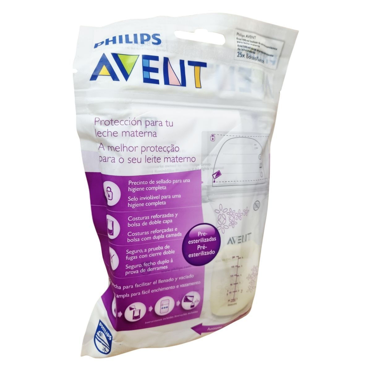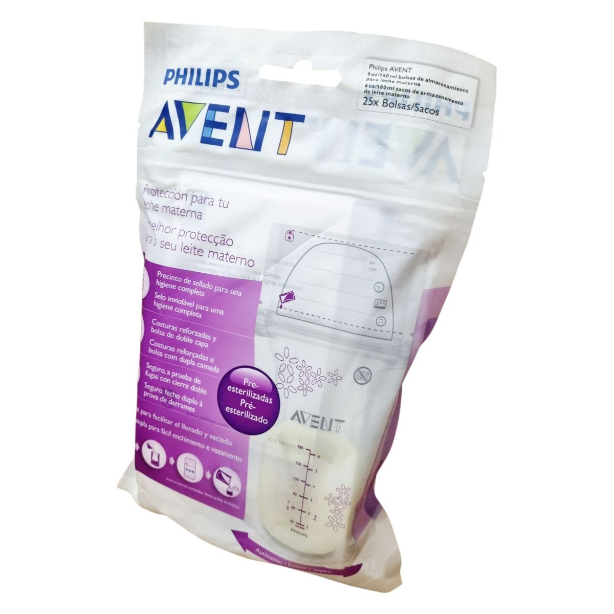 Elősterilizált anyatejtároló zacskók 180 ml űrtartalommal, 25 darabos kiszerelésben. Kétrétegű kialakítás, megerősített perem és erős simítózár biztosítja a szivárgásmentes és higiénikus tárolást. Széles nyílásának köszönhetően könnyen tölthető és önthető. Sterilizálást jelző tömítéssel ellátott, önállóan megálló tasak. Származási hely: Kína. Minőségét megőrzi a gyártástól számított 3 évig. További információ: www.philips.com.