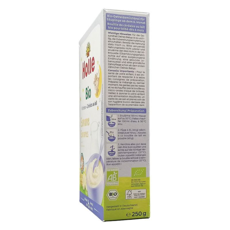 Holle bébiétel, banános tejkása. Könnyen emészthető kása kifejezetten csecsemőknek. Bio, cukrot nem tartalmazó termék. Glutén tartalmú. Főzés nélkül, csak víz felhasználásával egyszerűen elkészíthető.