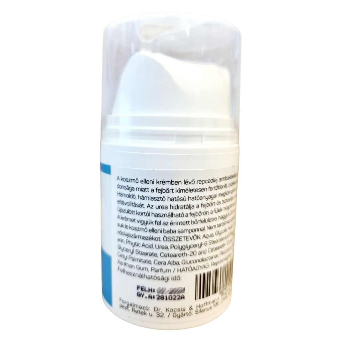A koszmó elleni krém repceolajat, ureát és hámlasztó hatású összetevőket tartalmaz, amelyek segíthetnek eltávolítani a koszmót, miközben hidratálhatják és nyugtathatják a fejbőrt.