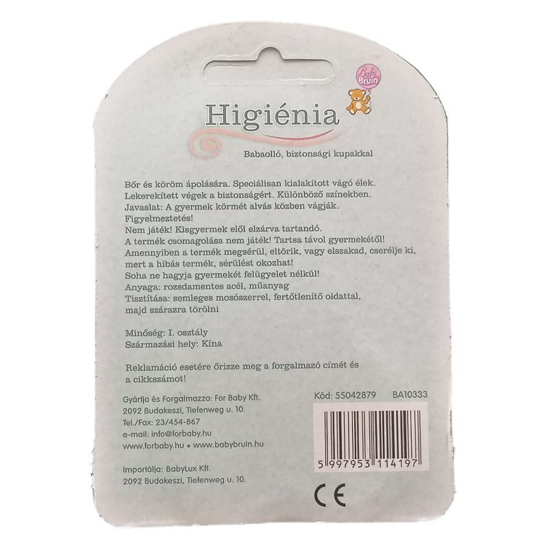 Lekerekített végű biztonsági eszköz, amely biztonságos vágást biztosít a kicsik környezetében.