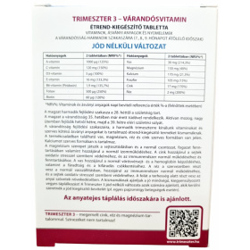 A Trimeszter 3 a várandósság harmadik szakaszára (7–9. hónap) kifejlesztett komplex készítmény, amely vitaminokat, ásványi anyagokat és nyomelemeket tartalmaz. Megemelt cink-, réz- és magnéziumtartalommal, allergénmentesen.