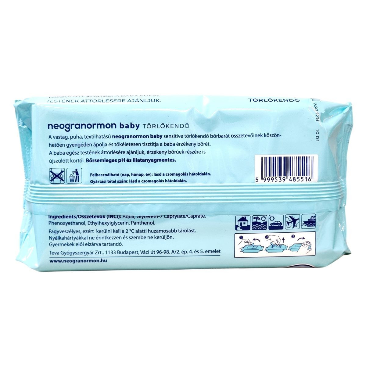 A neogranormon baby sensitive törlőkendő vastag, puha, textilhatású, bőrbarát összetevőinek köszönhetően gyengéden ápolja és hatékonyan tisztítja a baba érzékeny bőrét. Illatanyagmentes és bőrsemleges pH értékű, így alkalmas a baba egész testének áttörlésére már újszülött kortól. A termék műanyagot tartalmaz, ezért használatakor figyelembe kell venni a nyálkahártyákkal és szemmel kapcsolatos óvintézkedéseket. A gyártási tétel számát és a felhasználhatóság időpontját a csomagolás hátoldalán találja a vásárló.
