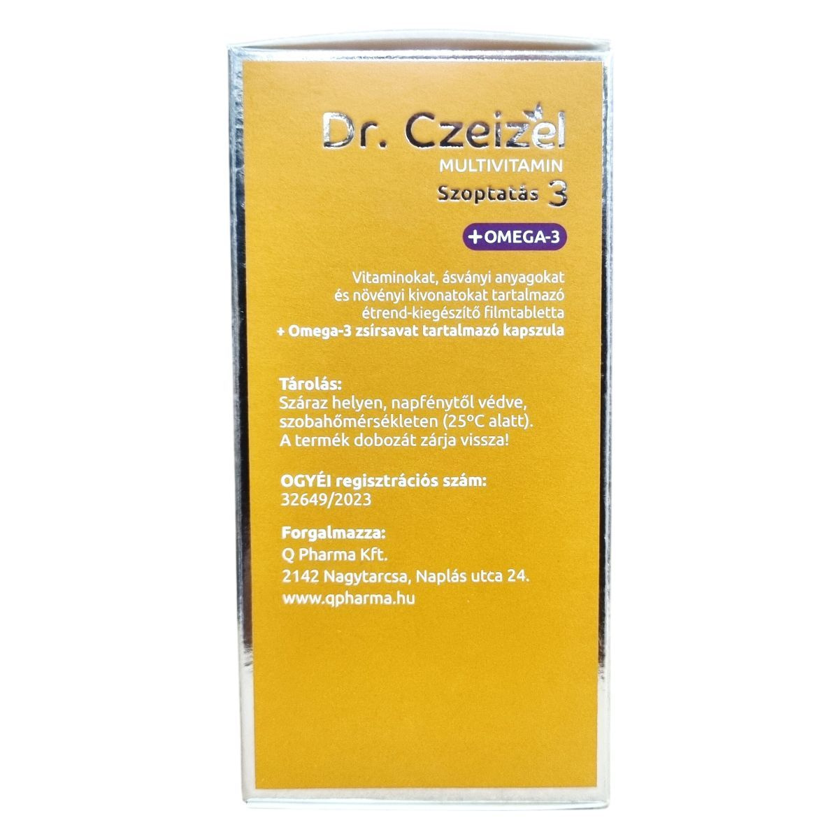 A Dr. Czeizel MULTIVITAMIN Szoptatás 3 +OMEGA-3 egy komplex étrend-kiegészítő, amely vitaminokat, ásványi anyagokat és növényi kivonatokat tartalmaz filmtabletta formában, továbbá Omega-3 zsírsavat kapszulában. A termék aktív folát tartalommal és szerves vasforrással rendelkezik, valamint mellőzi a laktózt, glutént és a cukrot. A reggeli filmtablettába folsav, D-vitamin és B6-vitamin tartozik, melyek hozzájárulhatnak a normál vérképződéshez, a sejtosztódáshoz, az immunrendszer működéséhez, valamint a fáradtság csökkentéséhez. Az esti filmtabletta jódot és vasat tartalmaz, amelyek támogathatják az idegrendszer és a pajzsmirigy egészséges működését. Az Omega-3 kapszula halolajat tartalmaz, amely az anyai DHA bevitelével hozzájárulhat a magzat és a szoptatott csecsemő agyának és szemének fejlődéséhez. A termék használata szoptatás alatt ajánlott, a szülést követően a teljes anyatejes táplálási időszakra. A termék nem helyettesíti a változatos étrendet és egészséges életmódot, valamint terhesség alatt nem szedhető. Kongruens csomagolása 30-30 reggeli és esti filmtablettát, valamint 30 db Omega-3 kapszulát tartalmaz.
