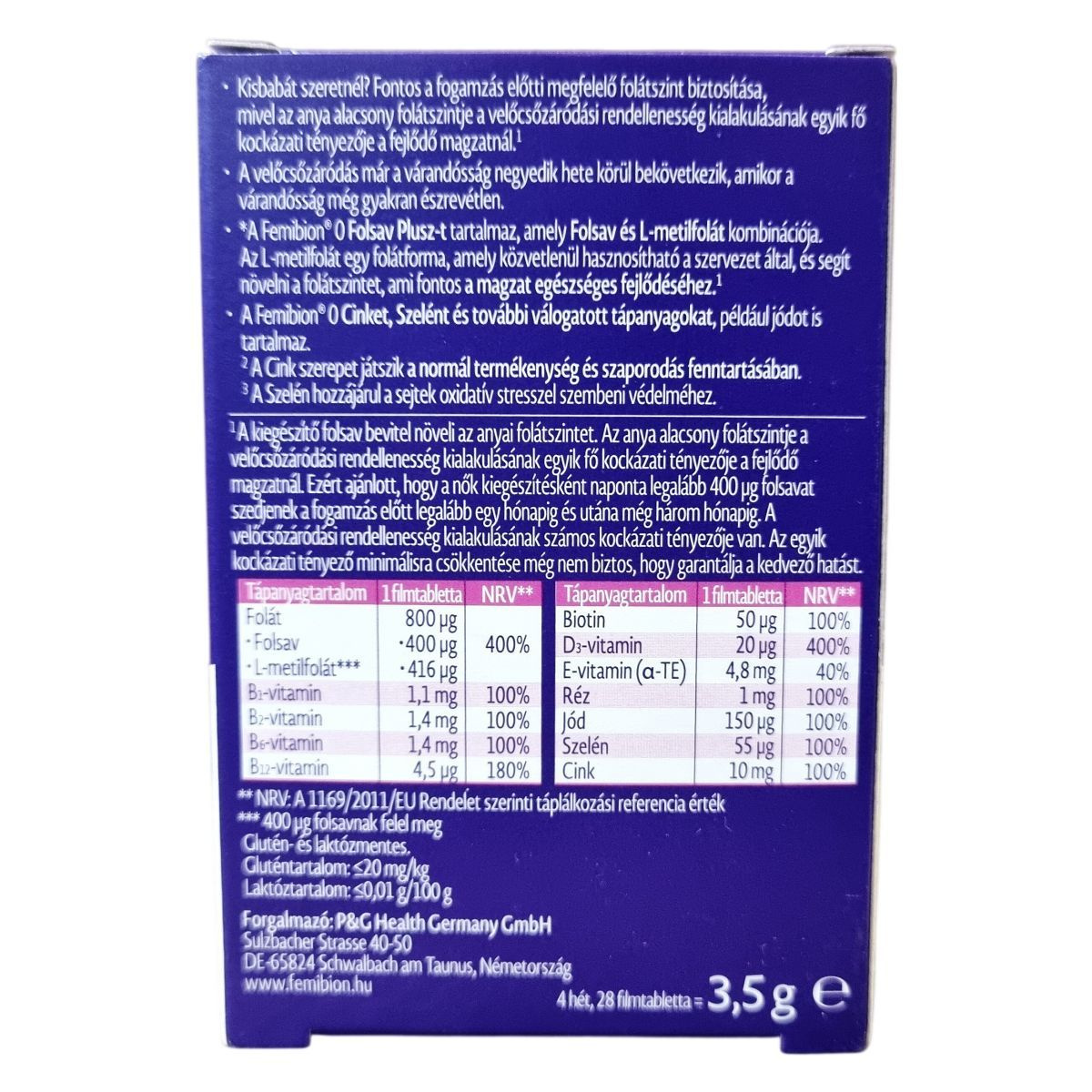 A femibion® Babatervezés étrend-kiegészítő a fogamzás előtti és korai terhességi időszakban ajánlott kiegészítő folsavforrást, amely kombinálja a szintetikus folsavat és az L-metilfolátot, amely a szervezet számára közvetlenül hasznosítható folátforma. A folát megfelelő szintje csökkentheti a velőcsőzáródási rendellenességek kialakulásának kockázatát, amelyek már a várandósság korai szakaszában, a negyedik hét körül bekövetkezhetnek, amikor a terhesség még gyakran felismeretlen. A termék emellett tartalmaz cinket, szelént, jódot, valamint más, a termékenység és az antioxidáns védelem szempontjából fontos vitaminokat és ásványi anyagokat. Ezek az összetevők hozzájárulhatnak a normál termékenység fenntartásához és a sejtek oxidatív stresszel szembeni védelméhez. A termék használata mellett javasolt a kiegyensúlyozott étrend és egészséges életmód fenntartása.