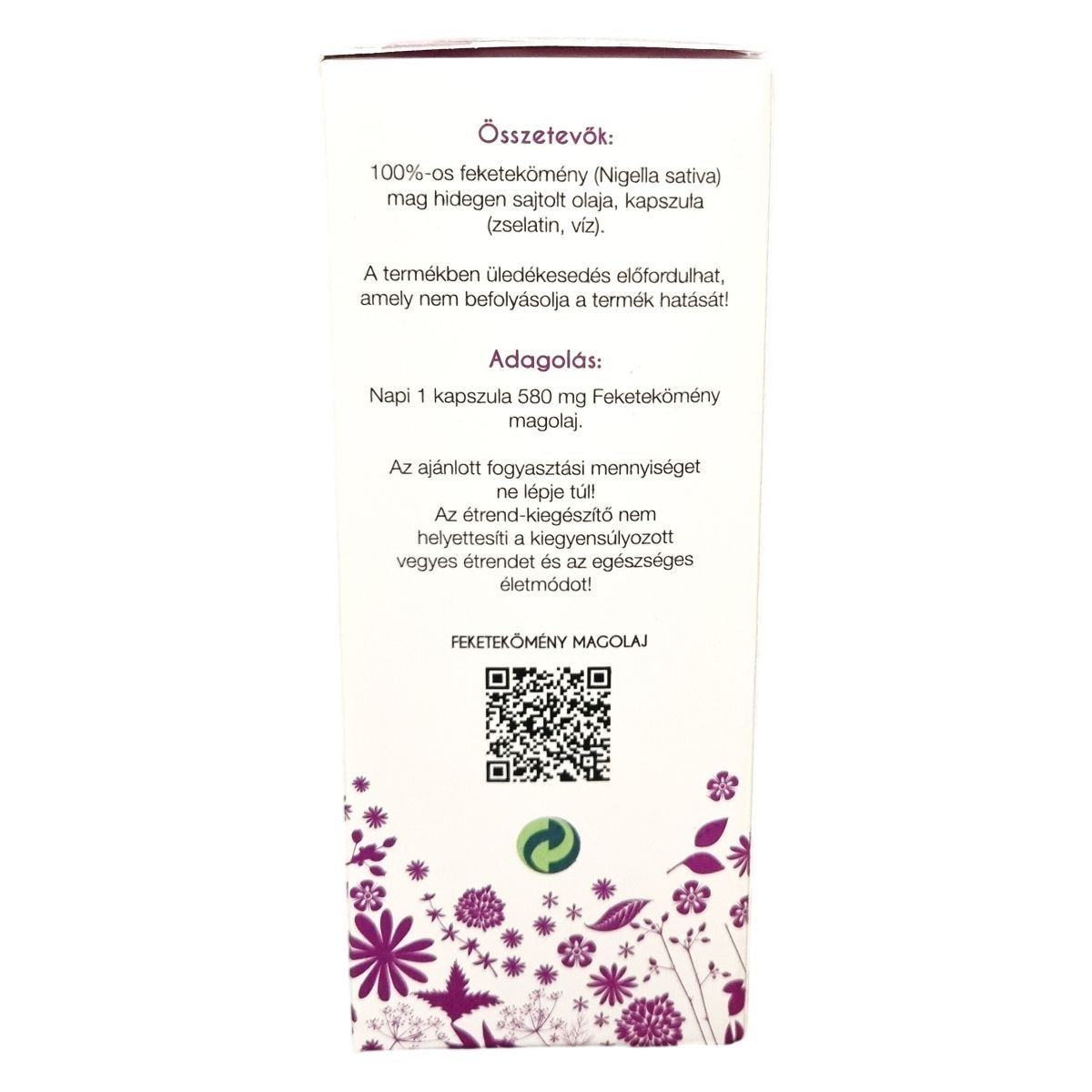 100%-os feketekömény (Nigella sativa) mag hidegen sajtolt olaja, kapszula (zselatin, víz)