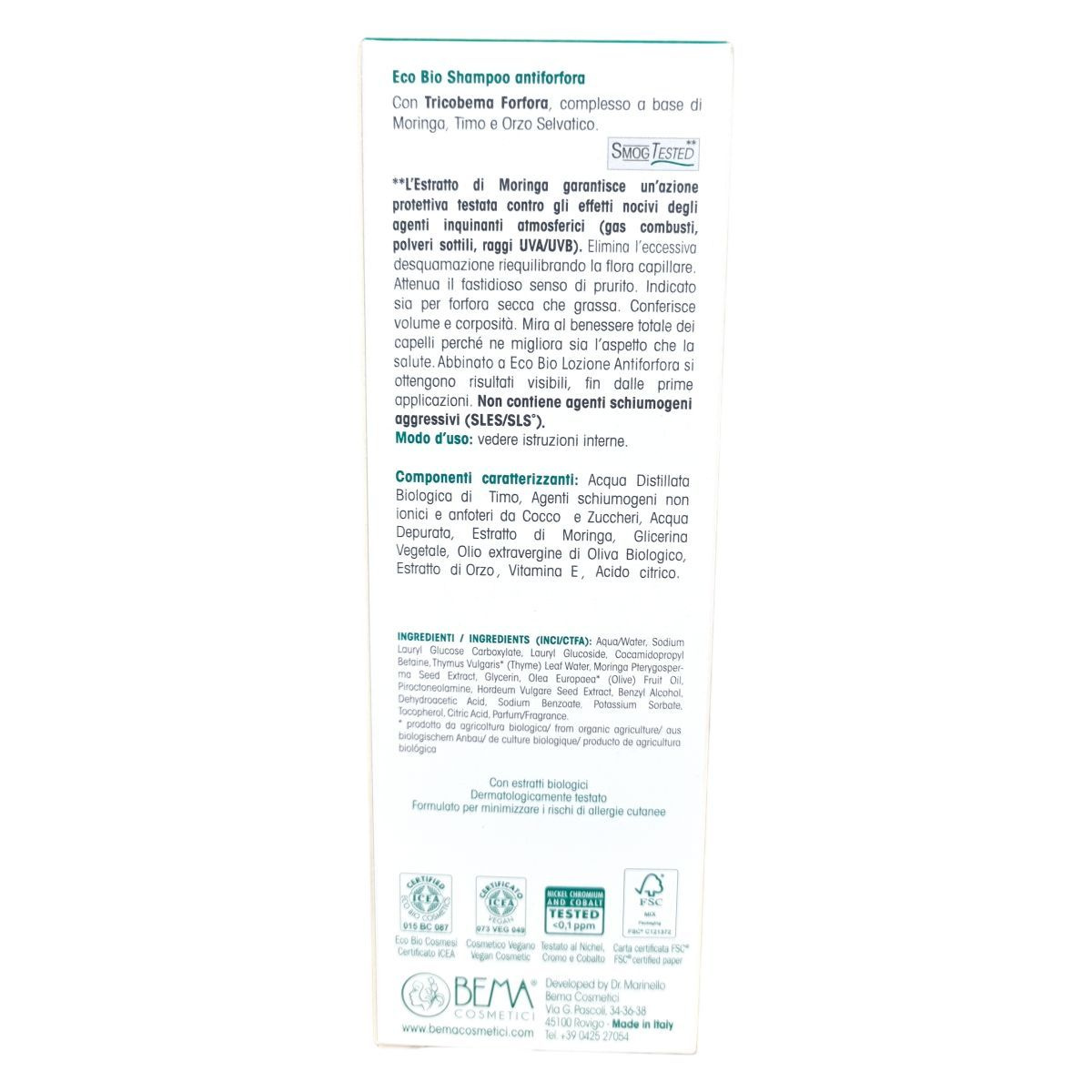 Certificato ICEA, Cosmetico Vegano, Testato al Nichel, Cromo e Cobalto