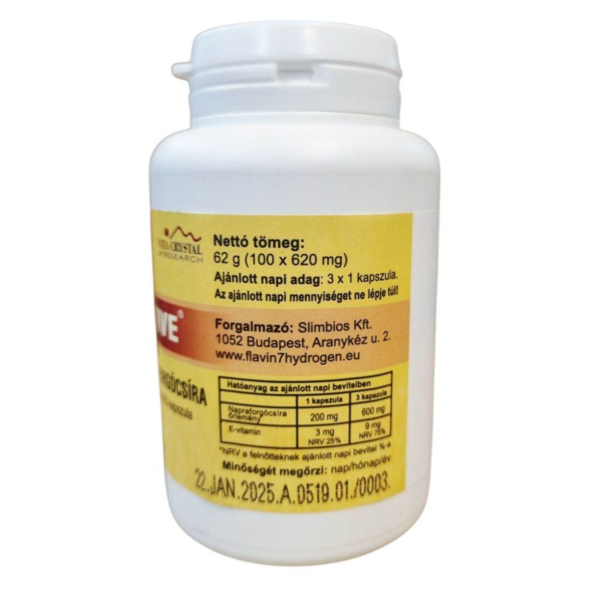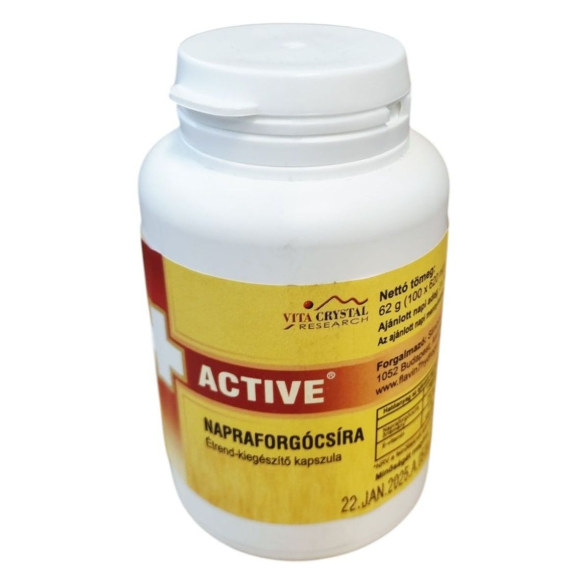A VITA ACTIVE Napraforgócsíra étrend-kiegészítő kapszula a Flavin 7 termékcsalád része, amely napraforgócsíra őrleményt és E-vitamint tartalmaz. Az E-vitamin hozzájárulhat a sejtek oxidatív stresszel szembeni védelméhez. A termék 100 kapszulát tartalmaz, és az ajánlott napi adag 3 x 1 kapszula. A kapszula összetevői között megtalálható a cirok mag-héj őrlemény és a HPMC kapszula is. Fontos, hogy az étrend-kiegészítő nem helyettesíti a kiegyensúlyozott vegyes étrendet és az egészséges életmódot, és kisgyermekektől elzárva tartandó. A terméket száraz, hűvös helyen kell tárolni. Forgalmazója a Slimbios Kft., székhelye Budapesten található.