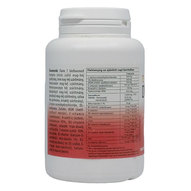 Vitaminok: B2-vitamin: Hozzájárul a haj, bőr és a köröm egészségének megőrzéséhez. Hiányában a szájsarok repedezik, a szemfehérje eressé válik, az arcon (orr, szem, száj) hámló bőrgyulladások jönnek létre. B3-vitamin: Hozzájárul a haj, bőr és a köröm egészségének megőrzéséhez. B5-vitamin: A pantoténsav hiánytünetei a következők: haj és fejbőr rendellenességek, fáradság/gyengeség, alvászavarok, bélrendszeri megbetegedések, kéz -és lábzsibbadás. C-vitamin: Mivel a C-vitamin jó hatással van a kollagén képződésre, és antioxidáns hatása is van, így hasznos lehet a bőr védelmében. E-vitamin: Antioxidáns hatású vitamin, mely védheti a bőrt, a hajat, a körmöket, a szemet az öregedés tüneteivel szemben. Béta-karotin: Hozzájárulhat a bőr öregedésének késleltetéséhez, a bőr egészségének megőrzéséhez. Biotin: A hajat egészségesebbé, a körmöket erőssebbé teheti a megfelelő vagy az igényt meghaladó biotin ellátottság. Hiánya fáradtsággal, étvágyvesztéssel, bőrproblémákkal, vérszegénységgel, érzészavarokkal, koleszterinszint emelkedéssel járhat. Ásványi anyagok: Cink: A cink enzimek fontos összetevője, mintegy 70 metalloenzim alkotórésze. Szervezetünkben körülbelül 1, 4-2, 5 g cink található. Nagyobb mennyiségben jelen van a csontokban, bőrben (a bőrben a teljes mennyiségnek mintegy 20%-a), izomzatban, valamint a májban és a vesében. Az aknék megelőzésében, a prosztata egészségének védelmében, proteinszintézisben, kollagén képzésben mind nagy szerepe lehet a kielégítő cinkfogyasztásnak. Jód: Jódhiány tünetei lehetnek az elhízás, fáradékonyság, hajhullás, emelkedett koleszterinszint, fokozott érelmeszesedés, stb. Réz: A réz részt vesz a melanin képződésben, így fontos a megfelelő bőr, haj pigmentációhoz is. Vas: Hiánya hajhulláshoz és töredező, gyenge körmökhöz vezethet. Lényeges összetevők: Lizin: A lizin egy eszenciális aminosav, ami elősegíti az izom-, a csont-, és egyéb szövetek kialakulását és megmaradását, mindemellett gyorsítja a regenerálódást is. Széles körben ismert a herpesz I. és II. elleni hatásossága folytán, és néhány öregedéssel összefüggő bőrproblémával szemben is sikeresen alkalmazható. Metionin: A metionin, ami a fehérjék egyik építőköve, erős antioxidáns, mely védi testünk szöveteit a pusztító szabadgyököktől - segíti az izmok építését, megelőzi azok lebomlását, segít a bőr rugalmasságának és egészségének megőrzésében, valamint erősíti, védi a hajat és a körmöket. Cisztein (N-Acetilcisztein): A cisztein fontos szereplő az erős kötőszövet kialakításában és megtartásában, valamint a bőr és a haj képződése során is fontos szerepet játszik. MSM: Támogatja a kollagén képződését, így segítve elő az izmok, ízületek, a bőr, a haj és a körmök egészségét. Hyaluronsav: Védi a bőrt az öregedés ellen, és segít visszaállítani annak simaságát és rugalmasságát a hidratáció fenntartásával.
