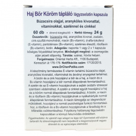 Gazdag vitaminokban, ásványi anyagokban és természetes kivonatokban, amelyek segítik a sejtek regenerálódását. A kapszula rendszeres szedése erősíti a hajszálakat, javítja a bőr textúráját és növeli a körmök ellenálló képességét. A benne található biotin és cink támogatja a haj növekedését, míg az E-vitamin védi a bőrsejteket a káros szabadgyököktől. A Haj-bőr-köröm kapszula a szépség és az egészség harmóniáját hozza el számodra, hogy mindig ragyogó lehess.