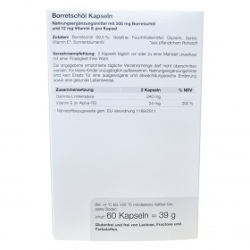 Borrágóolaj 69,5 %, zselatin, nedvesítőszer: glicerin, szorbit, E-vitamin (növényi eredetű), napraforgóolaj.