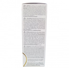 A használat előtt olvasd el a figyelmeztetéseket. 48 órával a hajfestés előtt érzékenységi próba szükséges. Ne használd, ha arcbőrkiütés jelentkezik, vagy ha érzékeny, irritált, sérült a fejbőr. Nem használható szempilla vagy szemöldök festésére. Szembe kerülés esetén azonnali öblítés szükséges. A hajfestés után a hajat alaposan ki kell öblíteni. A keveréket nem szabad később felhasználni. A keverési arány 1+1. Hosszú vagy vastag haj esetén két doboz használata ajánlott. Kesztű viselése szükséges.