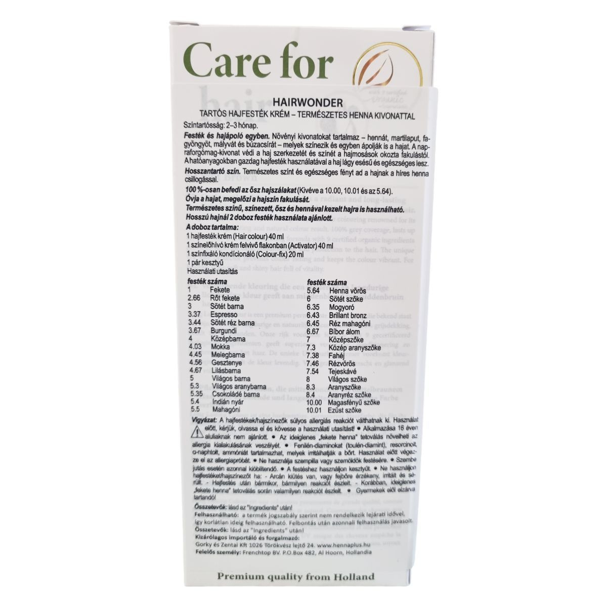 Felelős személy: Frenchtop Natural Care Products BV, Hollandia