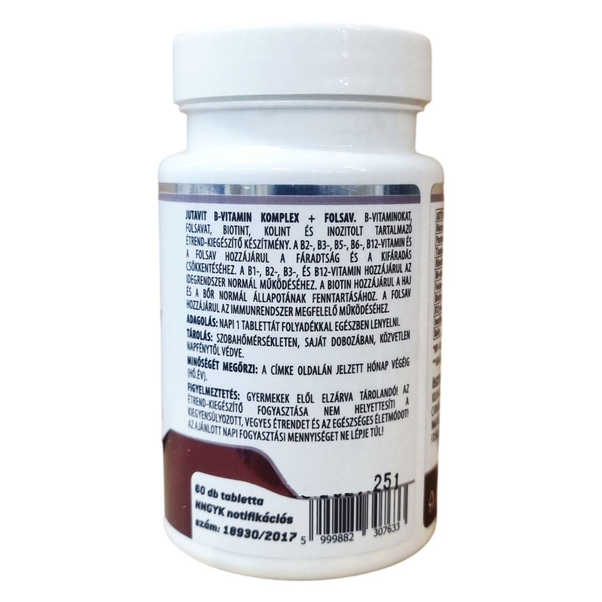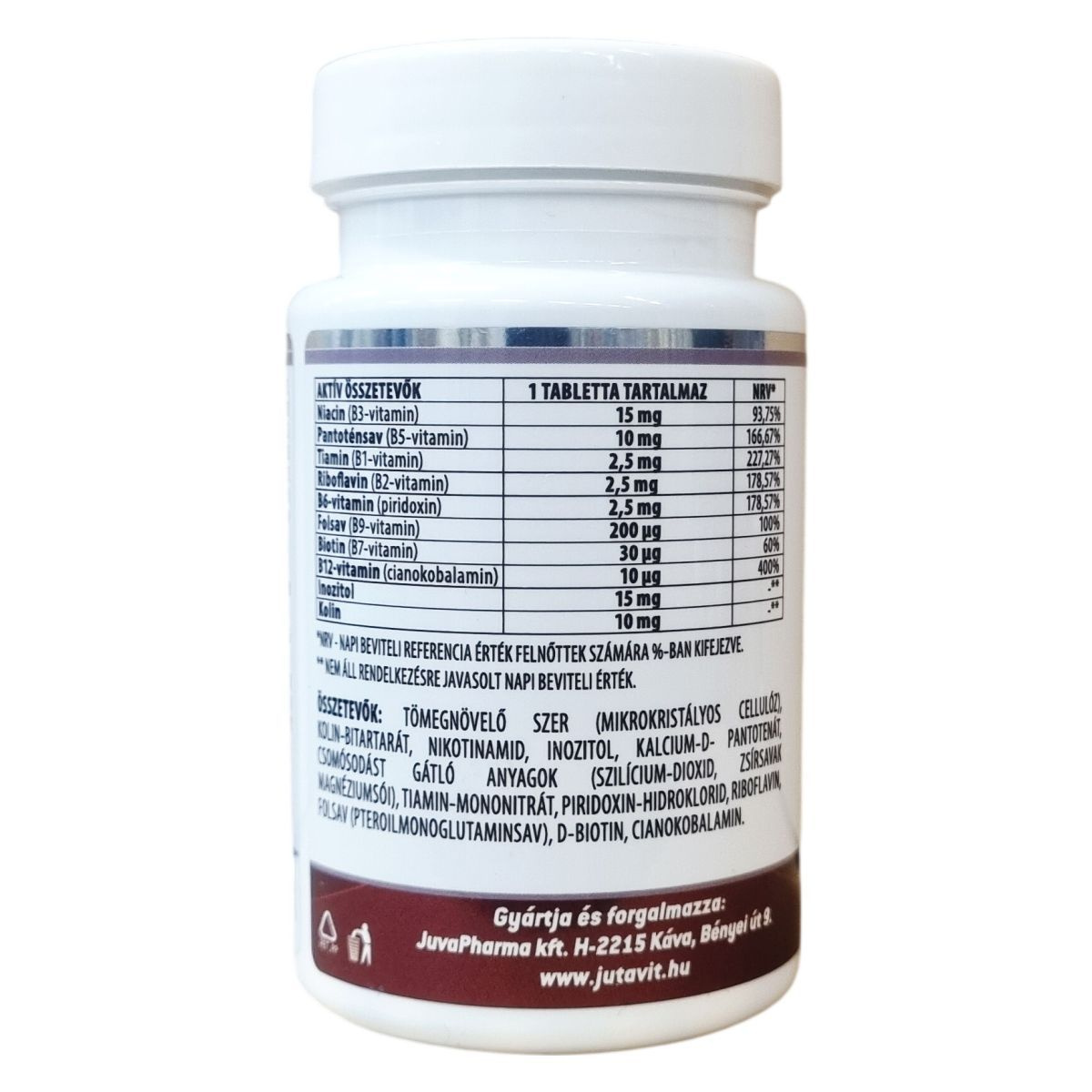 A JutaVit Superbrands B-komplex + FOLSAV egy B-vitaminokat, folsavat, biotint, kolint és inozitolt tartalmazó étrend-kiegészítő készítmény. A B2-, B3-, B5-, B6-, B12-vitamin és a folsav hozzájárulhat a fáradtság és a kifáradás csökkentéséhez. A B1-, B2-, B3- és B12-vitamin támogathatja az idegrendszer normál működését. A biotin részt vehet a haj és a bőr normál állapotának fenntartásában. A folsav hozzájárulhat az immunrendszer megfelelő működéséhez. A termék 60 darab tablettát tartalmaz, melyeket naponta egyszer, folyadékkal egészben kell lenyelni. Fontos, hogy az étrend-kiegészítő nem helyettesíti a változatos étrendet és az egészséges életmódot. A csomagot szobahőmérsékleten, közvetlen napfénytől védve kell tárolni.