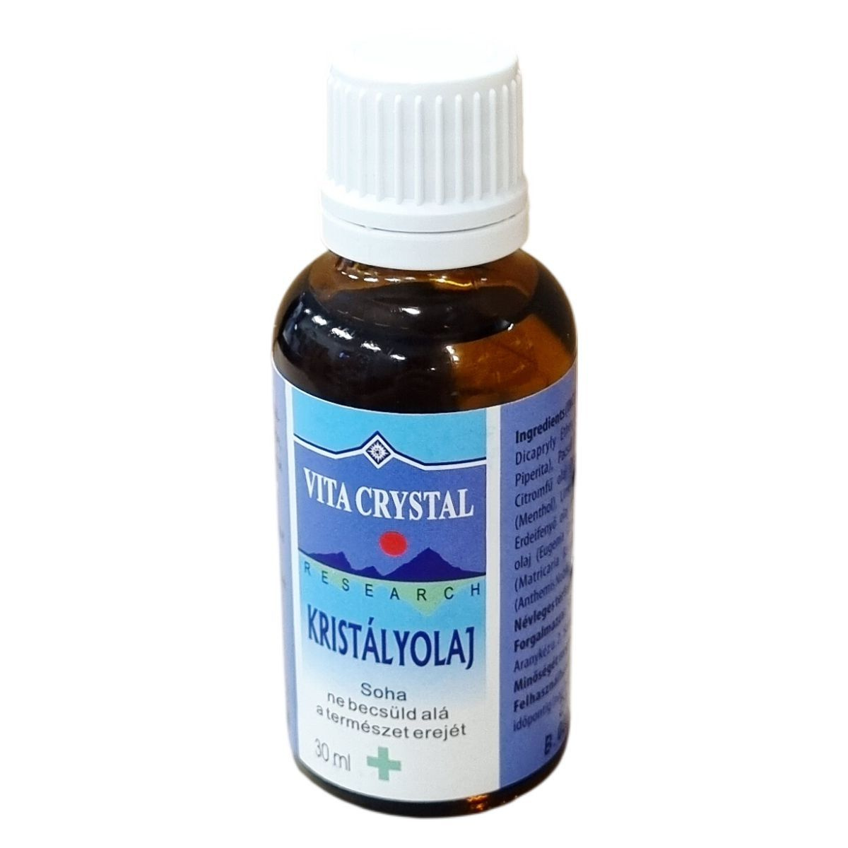 A Vita Crystal kristályolaj a természet erejét egyesíti különböző illóolajok és természetes komponensek formájában. A 30 ml kiszerelés praktikus használatot biztosít, főként náthás időszakokban vagy fájdalmak enyhítésére alkalmas. Használható párologtatóban vagy bedörzsölésre, emellett frissítő fürdő elkészítésére is ajánlott. A termék kizárólag természetes alapanyagokat tartalmaz, és 12 hónapig őrzi meg minőségét. A csomagolás jelzi a felhasználhatósági időpontot. Tartósítószert vagy egyéb adalékanyagot nem említ az összetevők listája. Fontos a termék szembe kerülésének elkerülése, valamint a gyerekek elől való gondos elzárás.