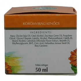 A kenőcs körömvirág hatóanyaga elősegíti a hámosodást és a sejtmegújulást, védi és nyugtatja a bőrt. Antibiotikus-, bőrsarjadást és hámosodást elősegítő hatású. Az E-vitamin tartalmú szójaolajnak köszönhetően védi a bőrt a környezeti ártalmakkal szemben. A krémet száraz, érzékeny bőrűeknek ajánljuk.