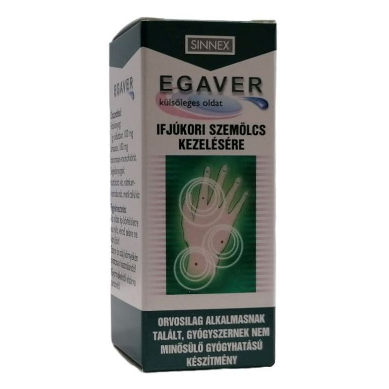 Mikor nem szabad az Egavert alkalmazni? Anyajegy vagy nem bizonyítottan vírus okozta szemölcs eredetű növedék esetében. Mit kell tudni az alkalmazás megkezdése előtt? Ha bizonytalan bőrelváltozásának szemölcs jellegében, az alkalmazása előtt kérje ki orvosa tanácsát. Használhatják-e gyermekek az ecsetelőt? Az ecsetelő alkalmazható gyermekeknél is, sőt kifejezetten az un. ifjúkori szemölcs kezelésére ajánlott. Mit kell megfontolni terhesség és szoptatás ideje alatt? Ezen élethelyzetekben történő alkalmazásra vonatkozó ellenjavallat nem ismert. Hogyan és milyen módon kell a készítményt alkalmazni? A megtisztított, majd megszárított beteg bőrfelületet pálcikára csavart vattára cseppentett oldattal naponta kétszer bekenni. Milyen nem kívánt hatásokat válthat ki a készítmény? Előírásszerű alkalmazás során, ezidáig nem kívánt hatásokat nem tapasztaltak. Mire kell még ügyelnie a készítmény alkalmazása során? Az Egaver ép bőrfelületre és nyílt vérző sebre ne kerüljön! Szem és száj környékén óvatosan használandó! Mennyi ideig alkalmazható az ecsetelő? A szemölcs nagyságától függően 3-6 hétig. A szemölcsök kiújulása esetén a kúra megismételhető. Hogyan kell tárolni a készítményt? Szobahőmérsékleten (15-25 Celsius fokon), jól lezárva! Gyermekektől elzárva tartandó!