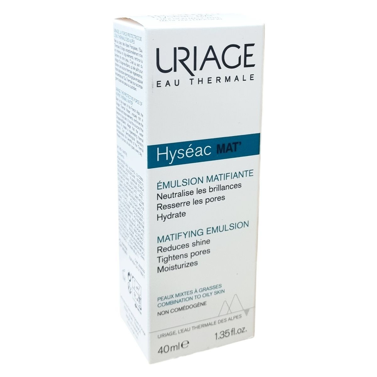 Az Uriage Hyséac MAT' emulzió egy mattító, hidratáló krém, amely specifikusan a kombinált és zsíros bőr napi ápolására lett kifejlesztve. Hatékonyan semlegesíti a felesleges faggyút és csökkenti a bőr csillogását mikrorészecskék segítségével, amelyek fényt szórnak. A zsírtermelést az édesgyökér kivonat szabályozza, míg a Pore refinyl® szabadalmaztatott összetevő segít összehúzni a kitágult pórusokat, javítva a faggyú minőségét és megelőzve a pórusok eltömődését, ezáltal csökkentve a pattanások és bőrhibák kialakulását. Az Uriage termálvíz, amely gazdag ásványi anyagokban és nyomelemekben, antioxidáns tulajdonságokkal bír, erősíti a bőr természetes védőrétegét, hidratálja és nyugtatja még a legérzékenyebb bőrt is. Könnyű, frissítő és hosszan tartó hidratáló textúrájával bársonyosan matt megjelenést biztosít és kiváló sminkalapként szolgál. A termék bőrgyógyászati teszteken alapul, aknéra hajlamos bőrön is kipróbált, paraben- és színezékmentes, hipoallergén formula. Az Uriage termálvíz a Francia Alpok természetes forrásából származik, ahol több mint 200 éve használják jótékony hatásai miatt, és az Uriage laboratóriumaival közösen fejlesztették ki ezt a bőrápolót, hogy megőrizze és védje a bőr egészségét minden nap.