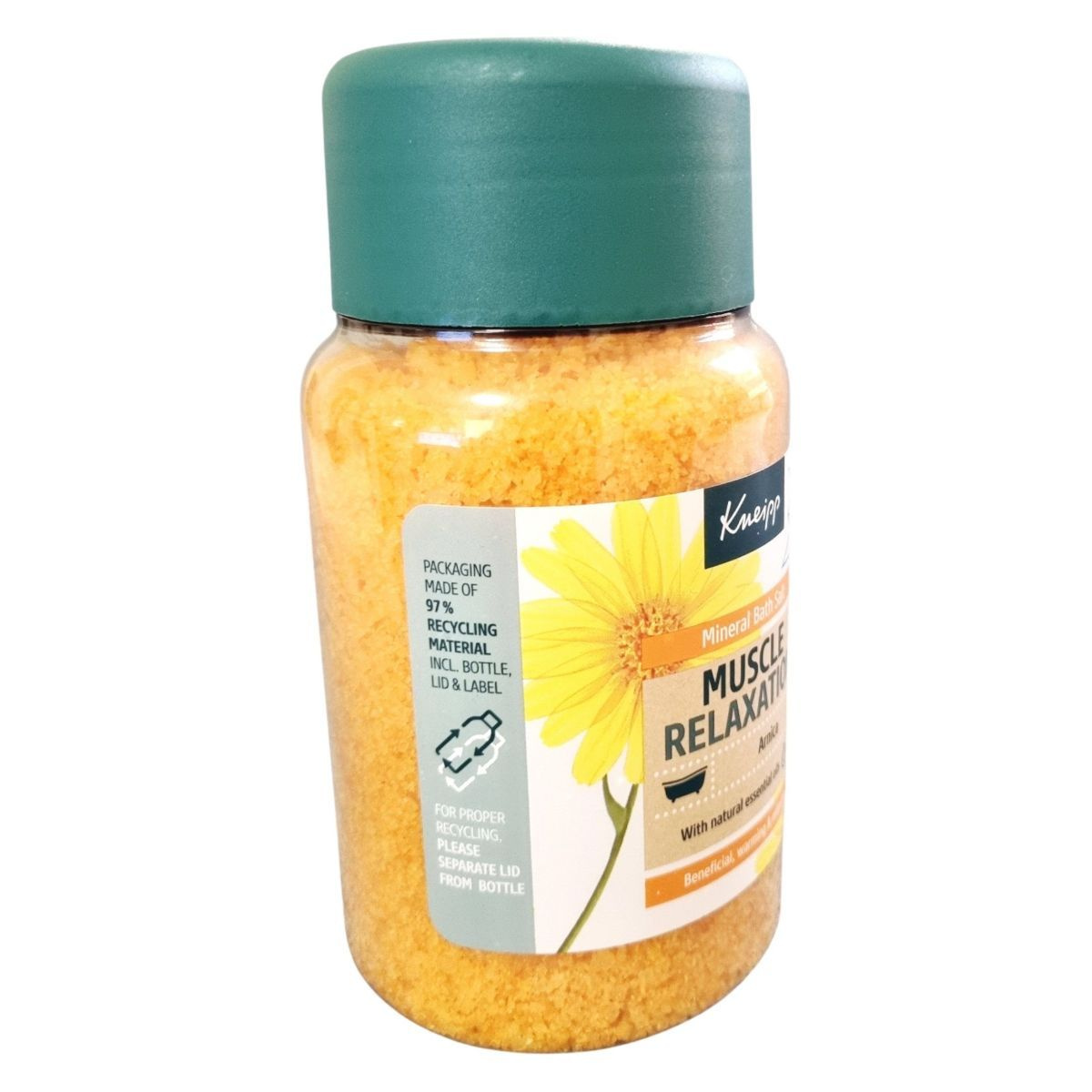 A Kneipp Mineral Bath Salt Muscle Relaxation fürdősó értékes árnika-kivonatot és természetes illóolajokat tartalmaz, amelyek segítenek az izmok ellazításában és a feszültség oldásában. A termék vegán, és nem tartalmaz állati eredetű összetevőket.