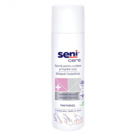 A Seni Care bőrápoló fürdetőhab tisztít, kondicionál és védi a bőrt az irritatív tényezőktől.