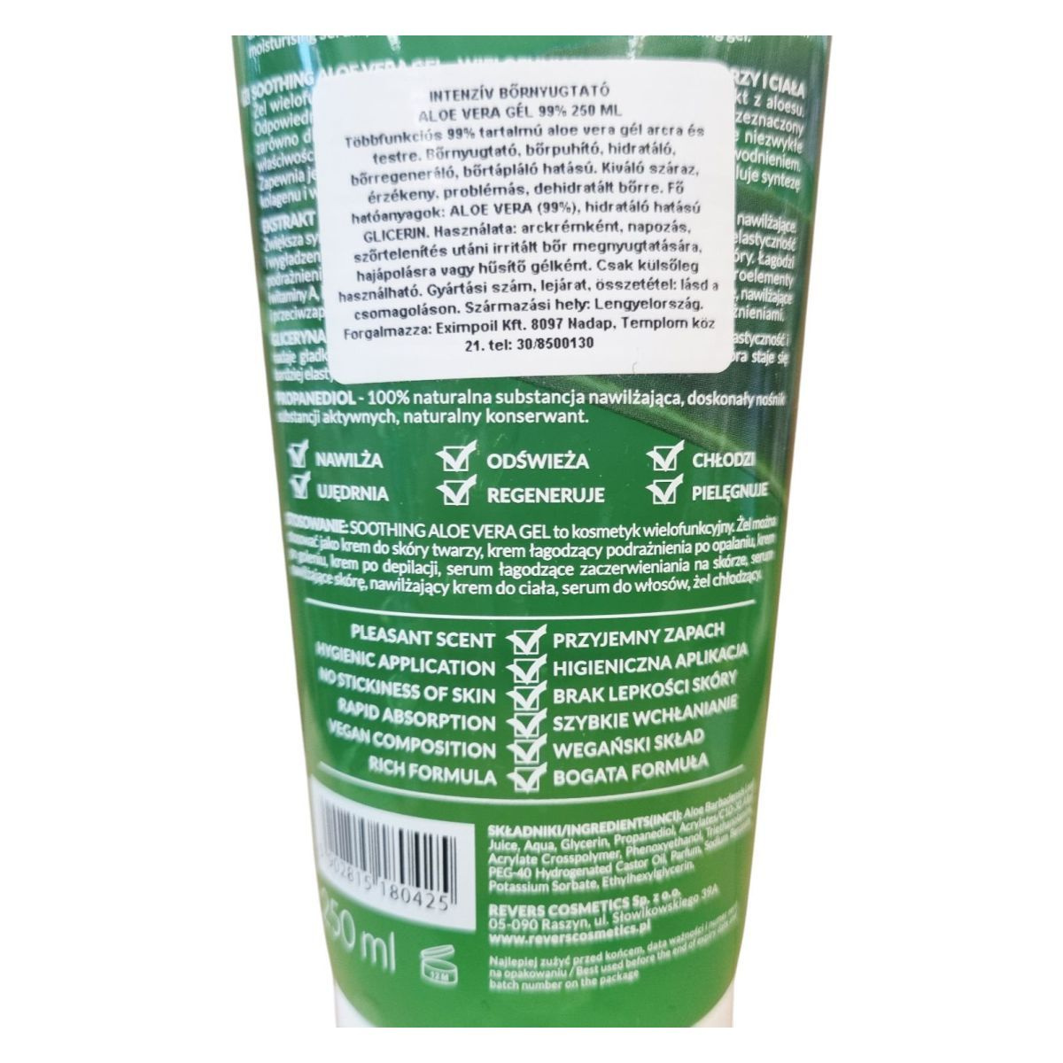 A 99%-os aloe vera tartalmú nyugtató gél intenzíven hidratálhatja és puhíthatja a bőrt, segíthet csökkenteni az irritációt, valamint elősegítheti a regenerációt. Testre és arcra egyaránt alkalmas.