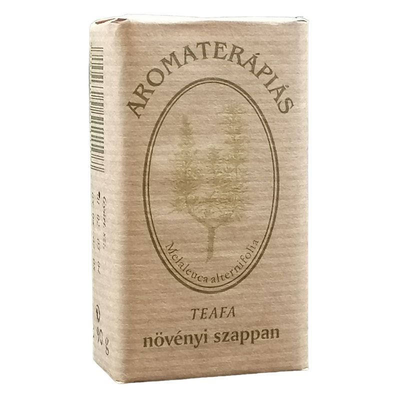Teafa: ez a szappan, teafa illóolajtartalmának köszönhetően, természetes baktériumölő hatású. Arctisztításra is kiváló, mert lágyan, kíméletesen tisztít, és alkalmas pattanások, pikkelysömör, bőrgyulladások és kisebb bőrproblémák kezelésére is. Összetevők: víz, glicerin, teafaolaj, konyhasó, csalánőrleménnyel festve.