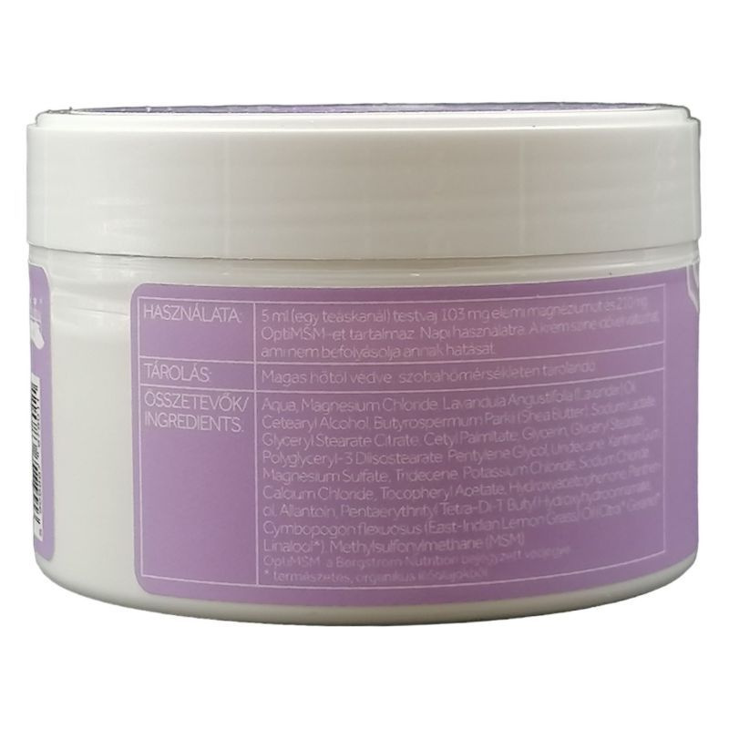 Ez a levendulás testvaj gazdag magnéziumban és OptiMSM-ben, melyek segítik az ízületek védelmét és regenerálódását. Kellemes illata és krémes textúrája révén gyorsan beszívódik, miközben táplálja a bőrt.