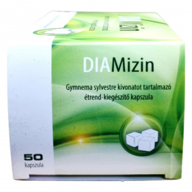 A DIAMizin étrend-kiegészítő kapszula a Gymnema sylvestre növény levelének standardizált kivonatát tartalmazza, amely hozzájárulhat a normál vércukorszint fenntartásához és csökkentheti az étvágyat. A termék 50 kapszulát tartalmaz, és mesterséges színezékek nélküli kapszulákból áll. Az ajánlott napi adag étkezés után 1 kapszula, 2-3 alkalommal naponta. A termék nem helyettesíti a kiegyensúlyozott étrendet és az egészséges életmódot, és nem ajánlott 20 év alatti személyeknek, terhes vagy szoptató anyáknak. Tárolása száraz, sötét helyen, +5 és +27 °C közötti hőmérsékleten javasolt. A kapszulák színeltérései a termék természetességéből adódnak, és nem jelentenek minőségi problémát.