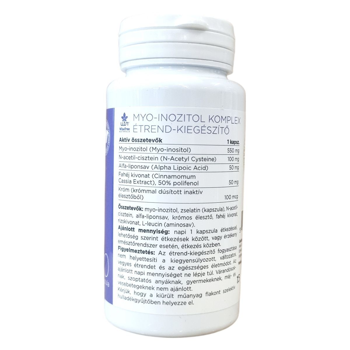 A wtn WiseTree NATURALS Myo-inozitol Komplex Magyarországon fejlesztett és gyártott termék, amely különféle hatóanyagokat tartalmaz, mint a myo-inozitol, N-acetil-cisztein, alfa-liponsav, krómmal dúsított inaktív élesztő és fahéj kivonat. Ezek az összetevők összehangoltan segíthetik a szervezet normál vércukorszintjének fenntartását. A kapszula zselatinból készül, és az étrend-kiegészítő a napi ajánlott adag mellett támogatást nyújthat a szervezetnek. A termék használata mellett javasolt a kiegyensúlyozott táplálkozás és egészséges életmód fenntartása.